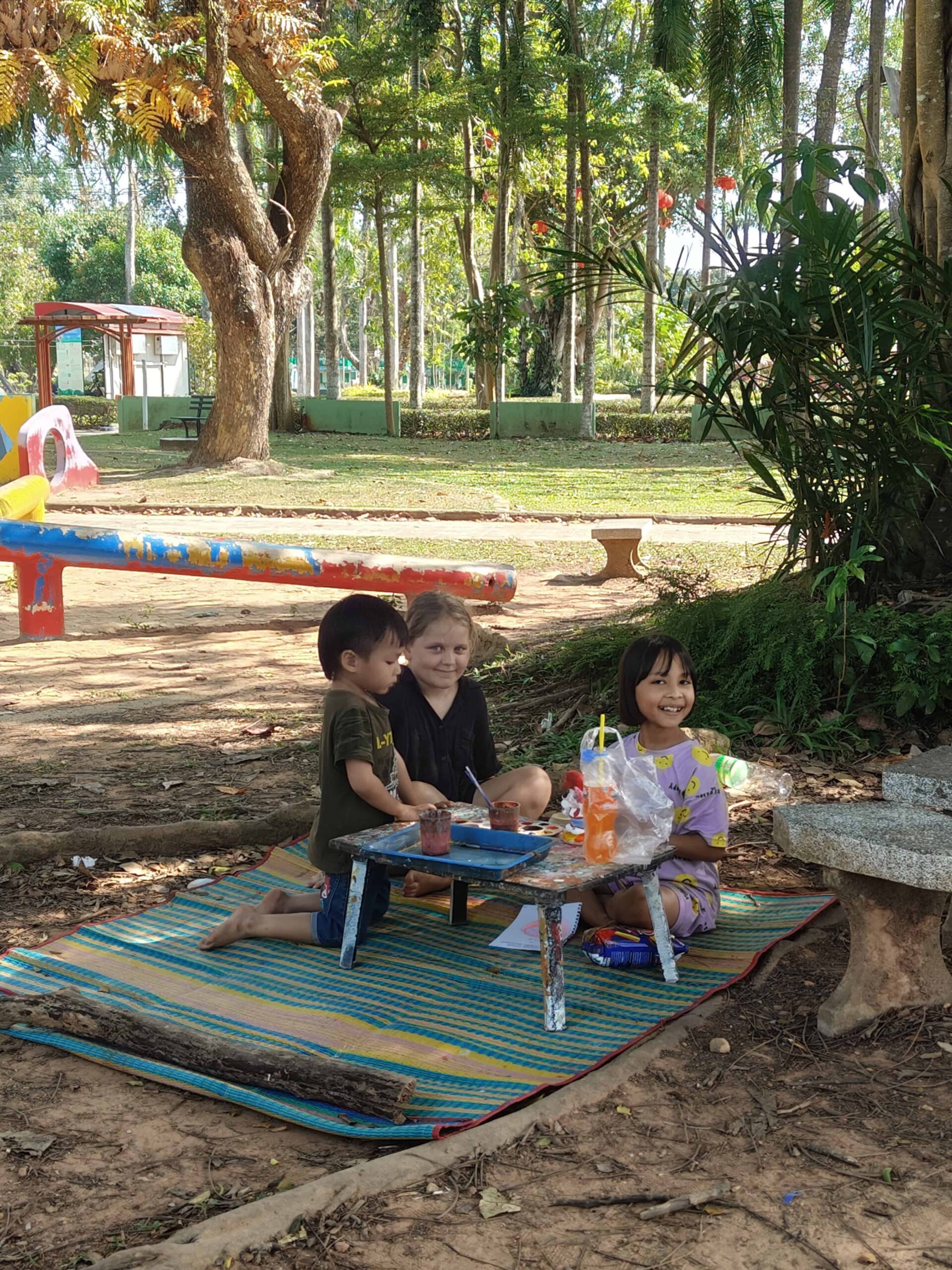 V tem parku si lahko na stojnici kupil glineno figuro, na posojo si pa dobil še barve, čopiče, mizico in podlogo za tla. Ob barvanju teh raznoraznih figur je tako preživljalo dan veliko družin. Pa ne samo otrok, tudi starejši so uživali v tej dejavnosti. Tudi Kajina prijateljica in njen bratec sta veselo barvala in povabila Kajo, da se jima pridruži.
