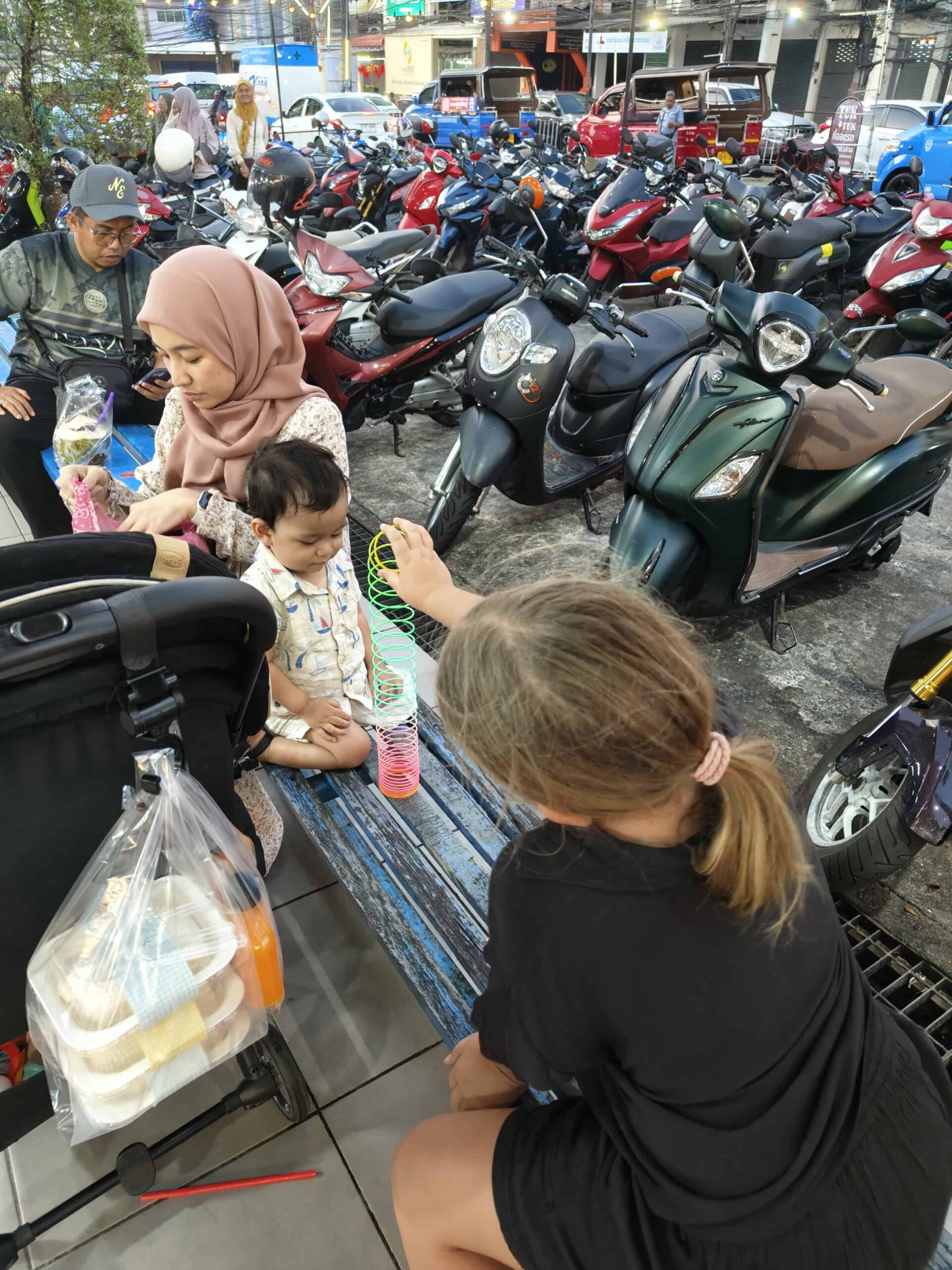 Tudi tukaj so bile ceste namenjene motorjem in avtomobilom, pešcem pa niti ne. Zato smo poklicale GRAB in se odpravile v bližnji park. Tukaj si se lahko z gondolo odpeljal na višji hrib kjer se je nahajal bojda čudovit tempelj. Tega sicer ne moremo potrditi, ker si je Kaja, kaj kmalu po prihodu do igral, našla tajsko prijateljico. Nikakor je nisva mogli prepričati, da bi se kam premaknile.