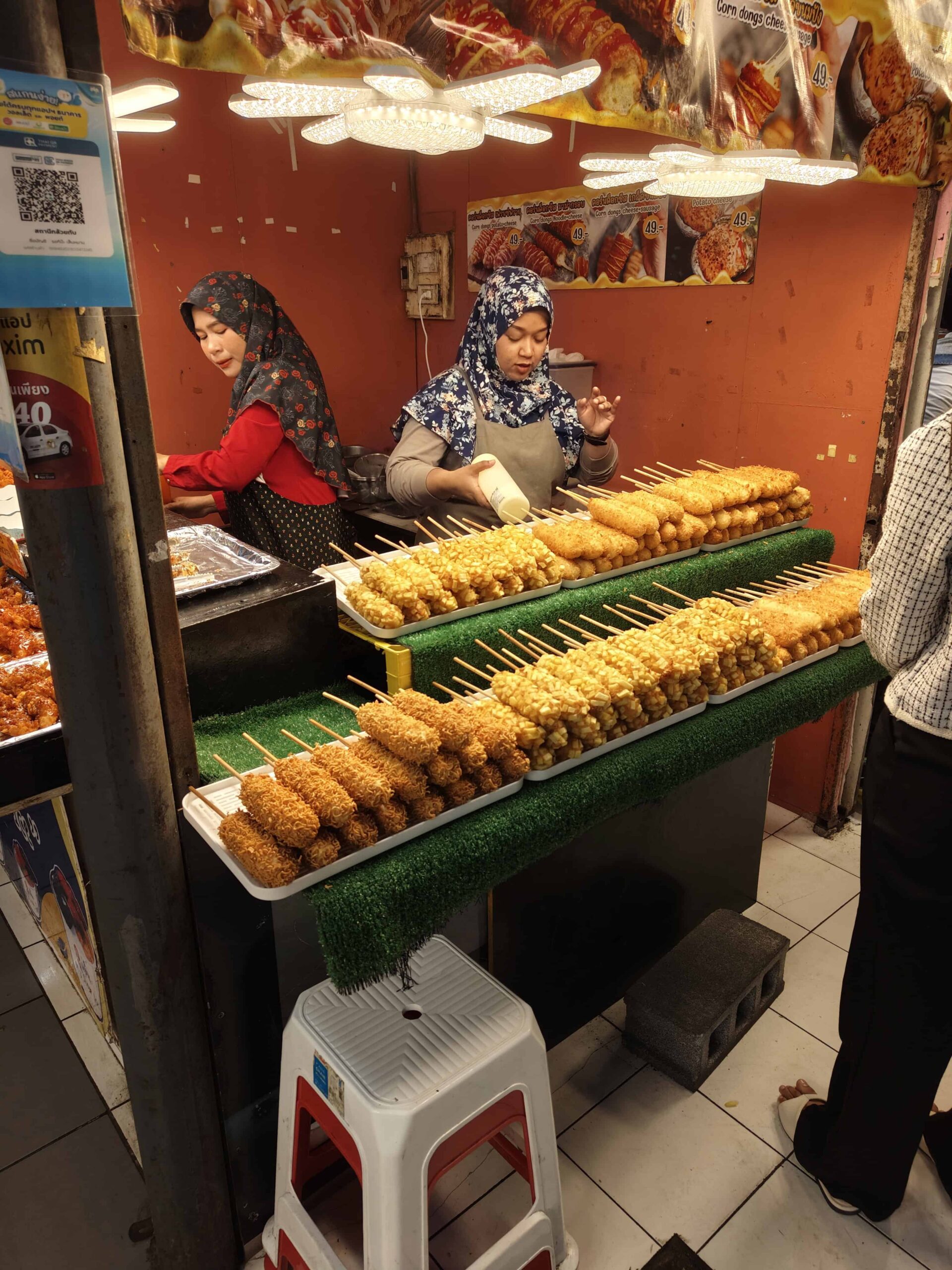 Tukaj je bilo hrane res čisto preveč. VSE so imeli. Tudi »Pad Thai«, ki pa niti ni bil preveč dober. Kaja je klasično navalila na mango z rižem, midve pa sva bili precej bolj odprti za vse krasne jedi, ki so nas obkrožale. Od rezancev, riža in juh na 100 načinov, morskih sadežev, vseh vrst mesa, »corn dog-ov«, gigantskega pomfrija, do hroščev, ličink in podobnih »eksotičnih specialitet«. Tukaj smo zares dobro jedle. In ravno po tem si bomo najbolj zapomnile to mesto – po odlični hrani.