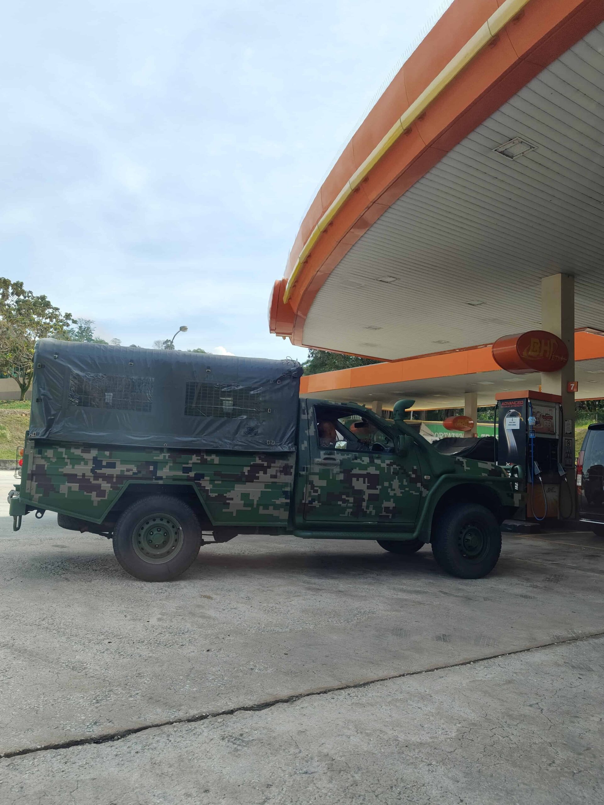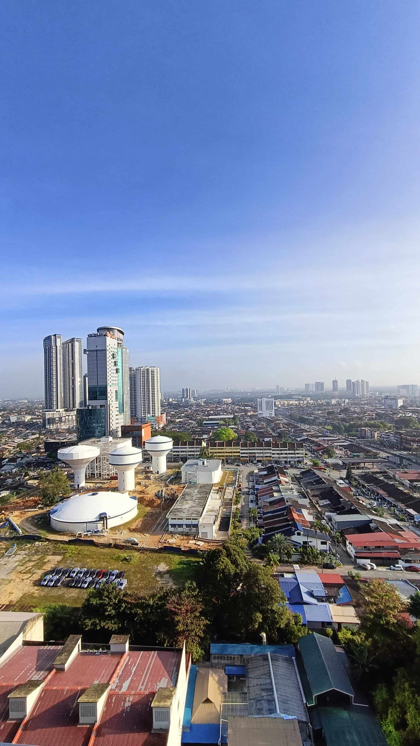 Pogled iz stanovanja na na mesto Johor Bahru in malezijski vojaški avto