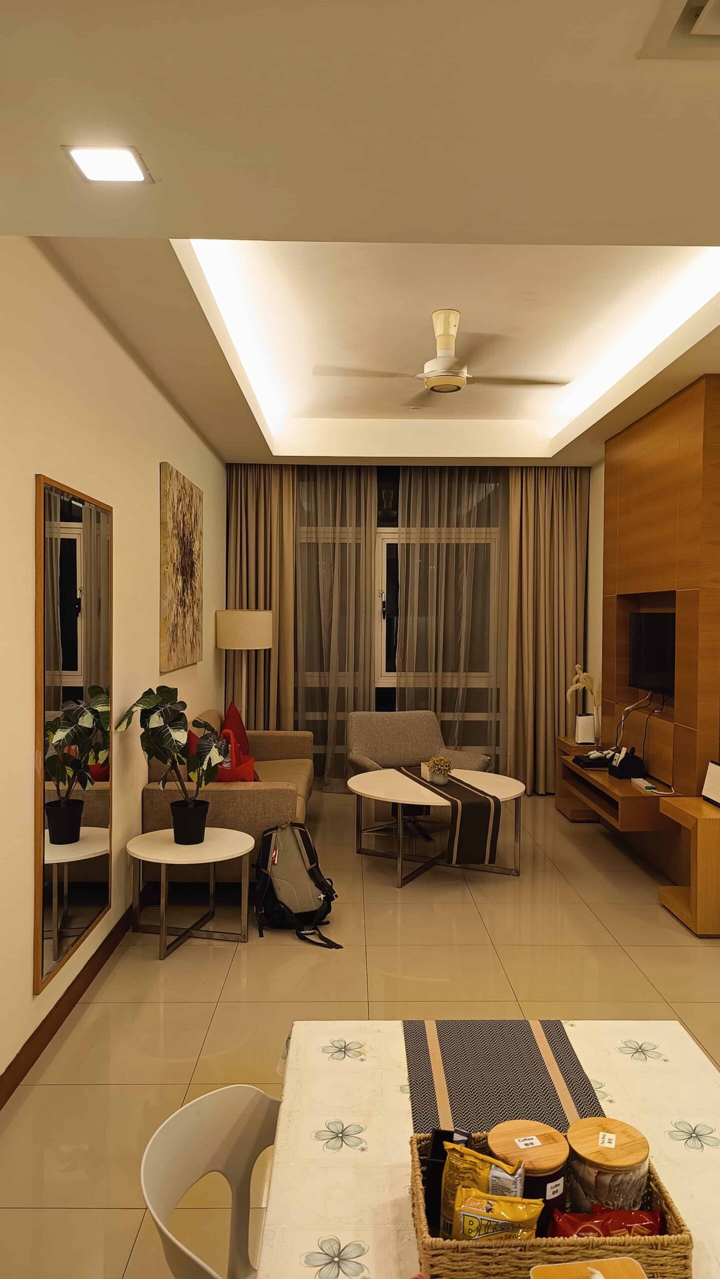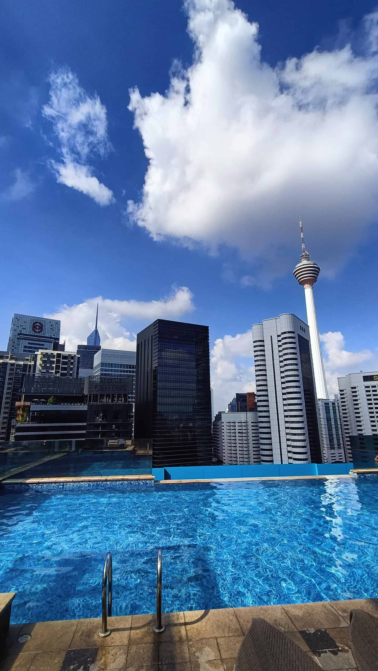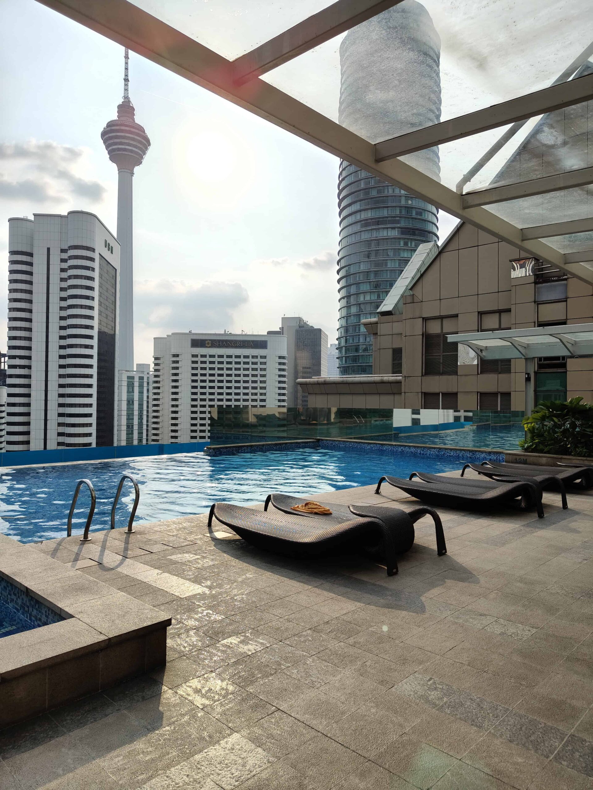 Stanovanje smo rezervirali pri Airbnb in zadeli terno: krasen apartma z dvema velikima spalnicama, dvema kopalnicama, kuhinjo, dnevno sobo (z igralno konzolo, kar je za mulce pomenilo še eno atrakcijo) in bazenom na strehi. Par korakov od Petronasovih dvojčkov.