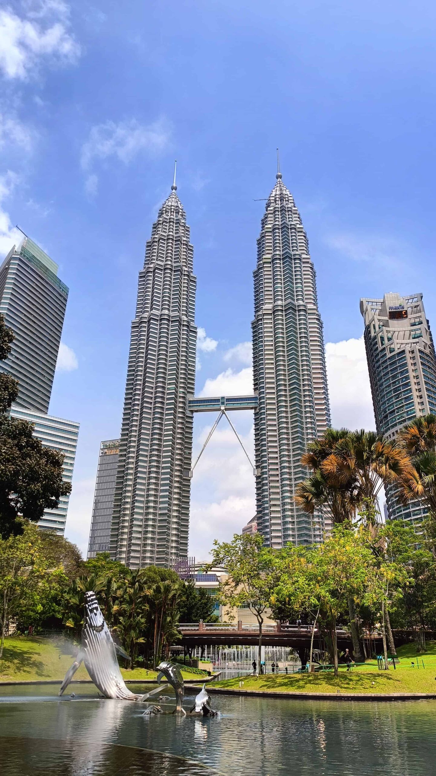 Naslednji dan smo se sprehodili do glavne znamenitosti – Petronasovih dvojčkov, ki ti v živo čisto zares vzamejo dih. Na njih se sicer nismo povzpeli, smo si pa ogledali notranjost in park okrog njih. Če potujete tja z otroki, ne smete mimo brezplačnih bazenčkov in igral ob Petronasovih dvojčkih, sploh ker se v tisti hudi vročini tako zelo paše malo osvežiti.