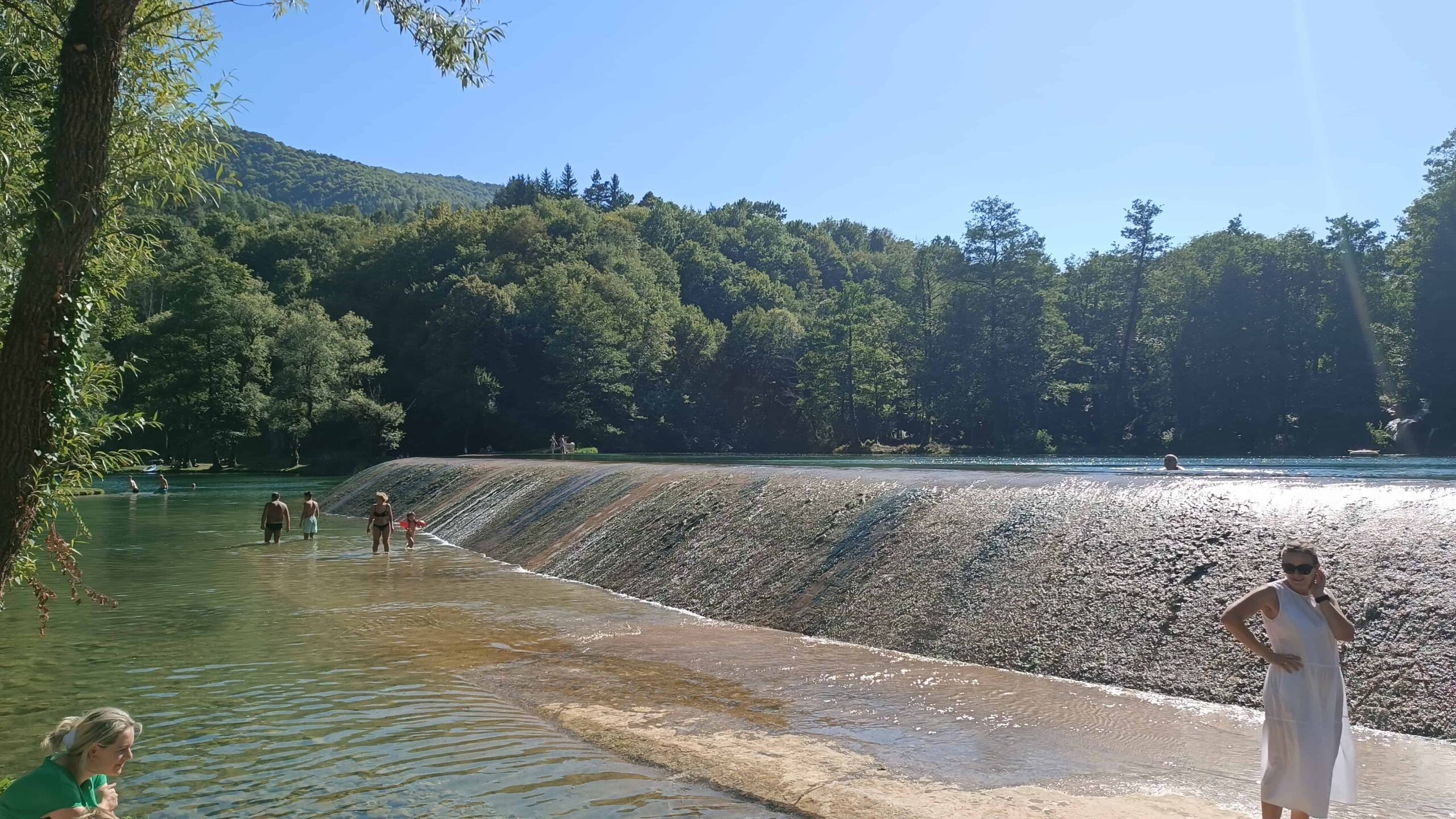 Čeprav smo računale na to, da se bomo v njej tudi skopale, smo si to hitro, ko smo namočile v vodo prste, premislile. V poletnih mesecih se lahko temperatura vode sicer dvigne in je primerna za plavanje, vendar lansko poletje ni bilo najbolj vroče, zato je bila precej hladna.