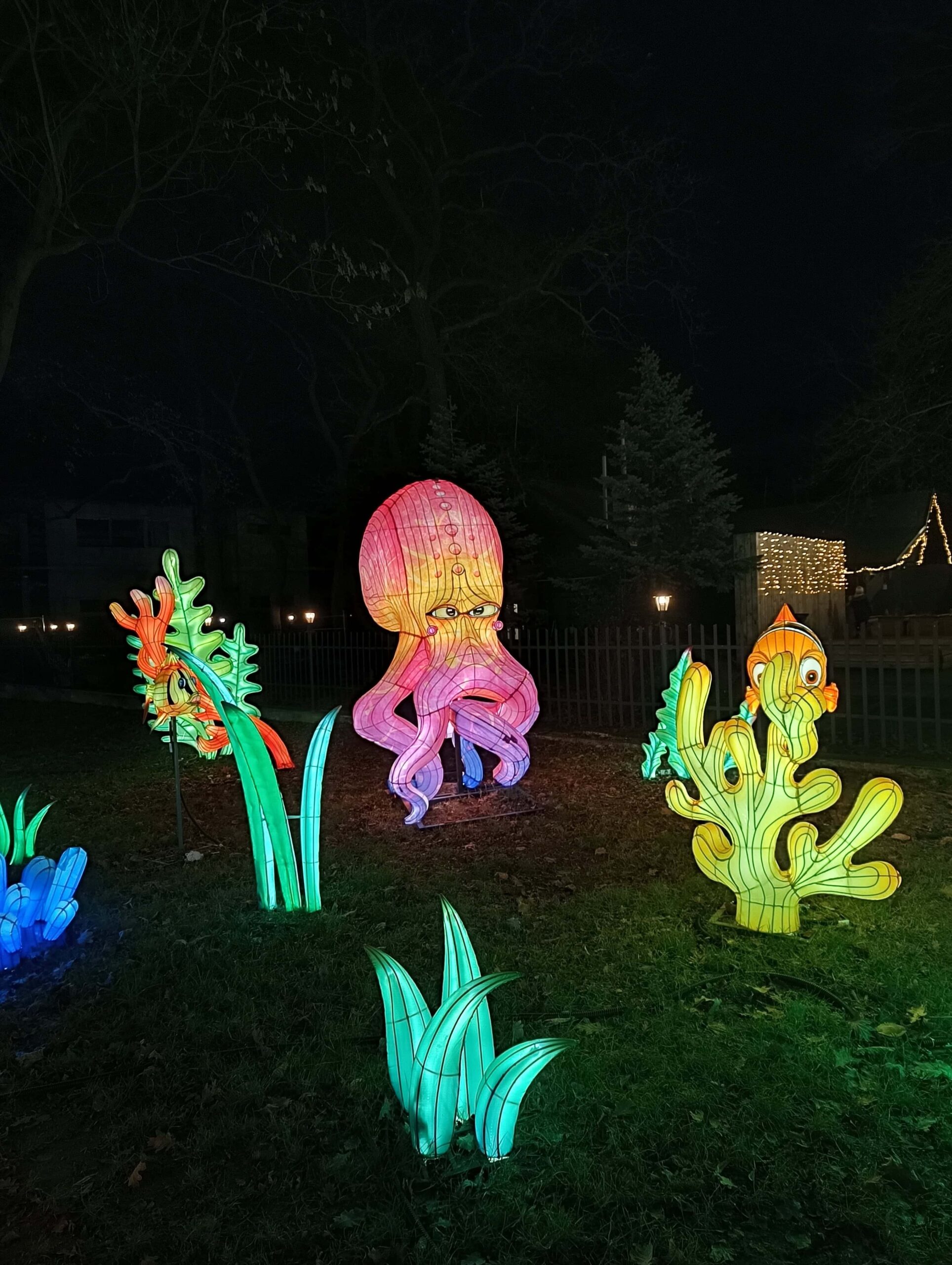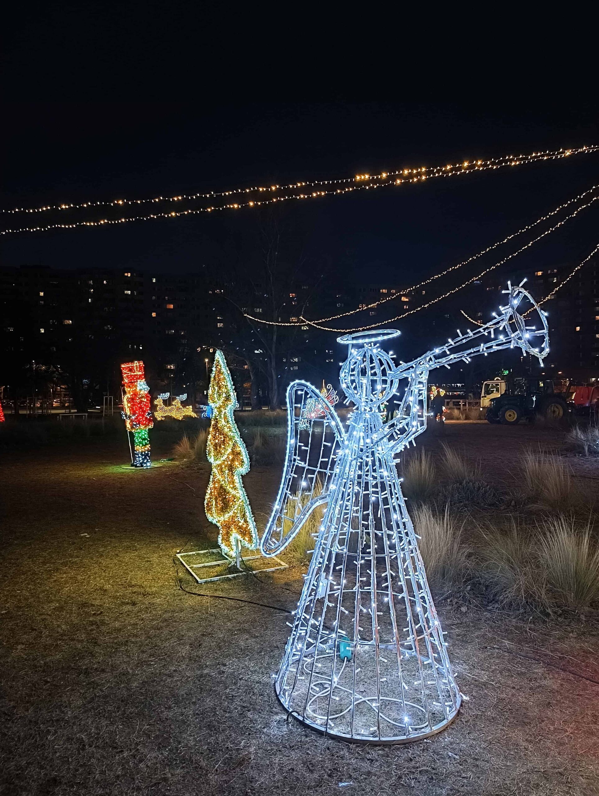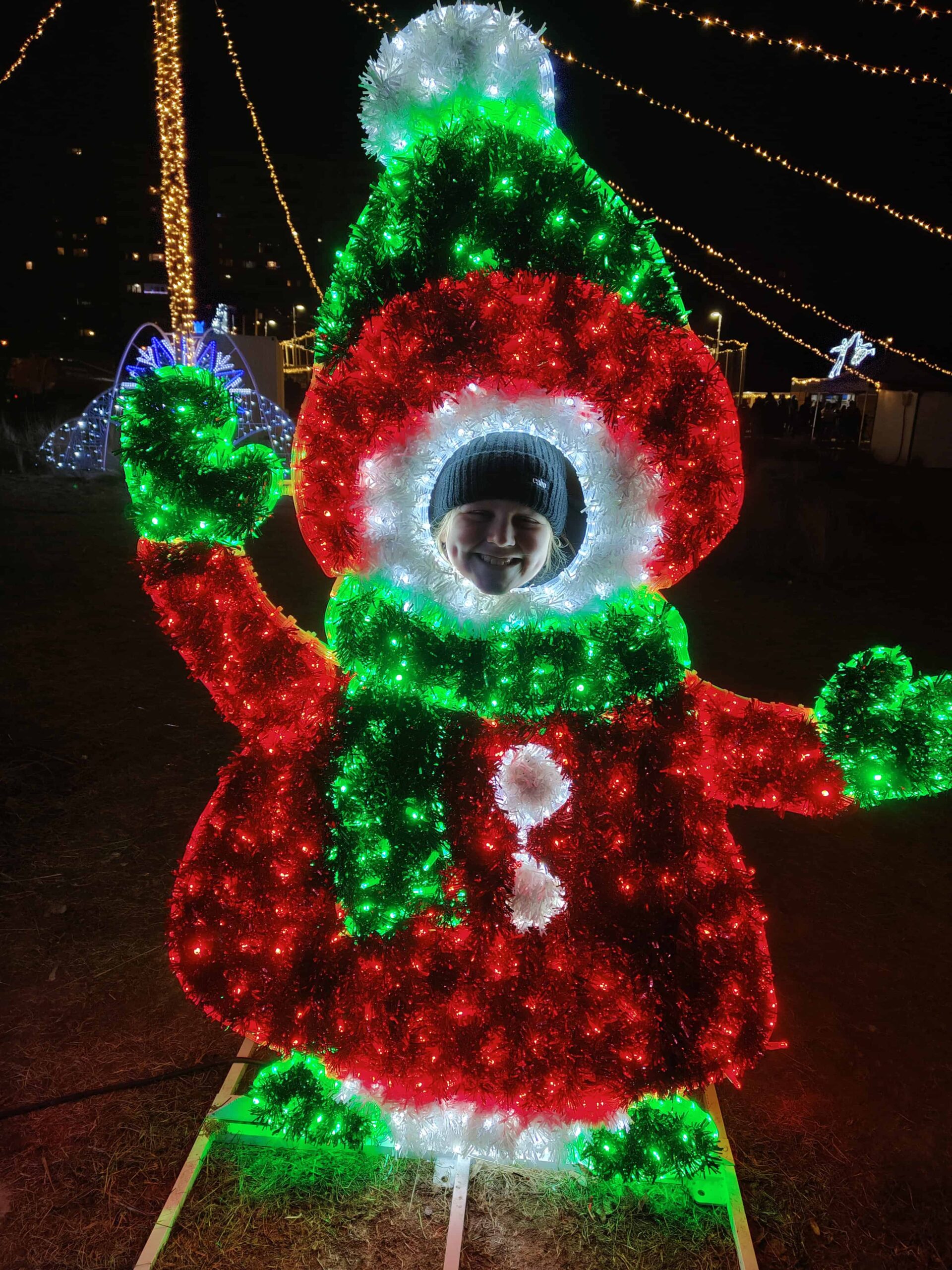 - Osvetljene praznične figure – velike in barvite dekoracije, ki so pravo ozadje za družinske fotografije.