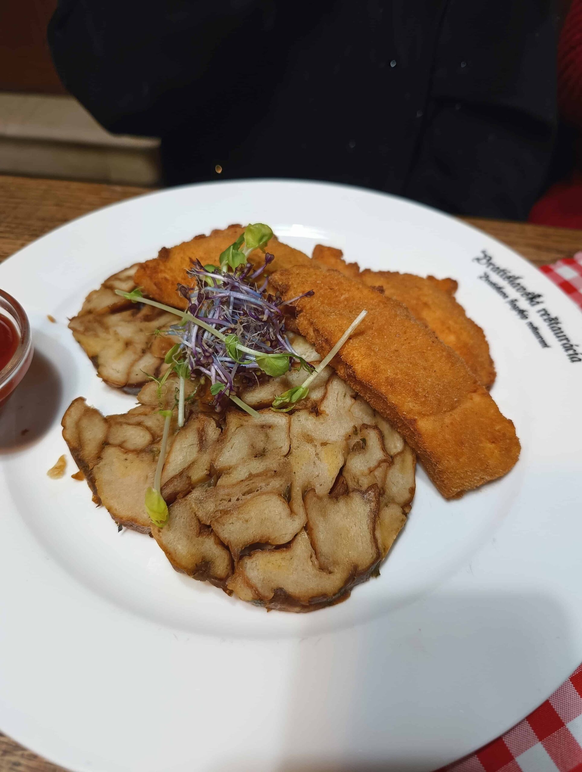 - Ciganska pečenka (Cigánska pečienka) – sočen piščančji zrezek, pečen v kruhu, s čebulo in dušeno/okisano zelenjavo (absolutna must try)